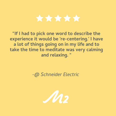Behind many workplace mindfulness programs is a passionate employee leading the charge-- over and above her/his day job. Today M2 was thrilled to support our friend and design collaborator, Diane Pruitt, a Schneider Electric wellbeing "champion" as she led a mindfulness session for her colleagues. Diane leverages her personal training and practice with content that her company makes available worldwide, to promote leadership training and culture at the local level.